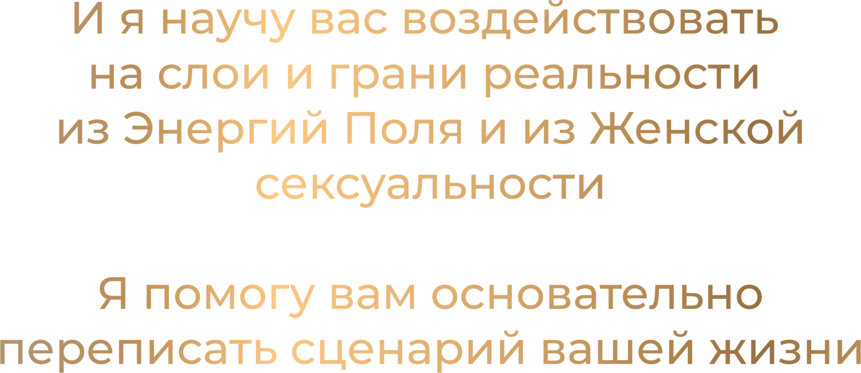 "Я хочу, чтобы в моем Пространстве и на Планете было больше счастливых, довольных, уверенных в себе Женщин. Я верю, что благодаря раскрытой Сакральной Женской Энергии в мире станет еще больше любви и тепла